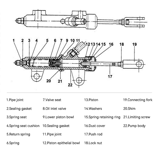 The clutch master cylinder is the core component of a hydraulic clutch system. It converts the mechanical force from the driver's clutch pedal input into hydraulic pressure, which is then transmitted through hydraulic lines to the clutch slave cylinder, ultimately enabling the engagement and disengagement of the clutch.